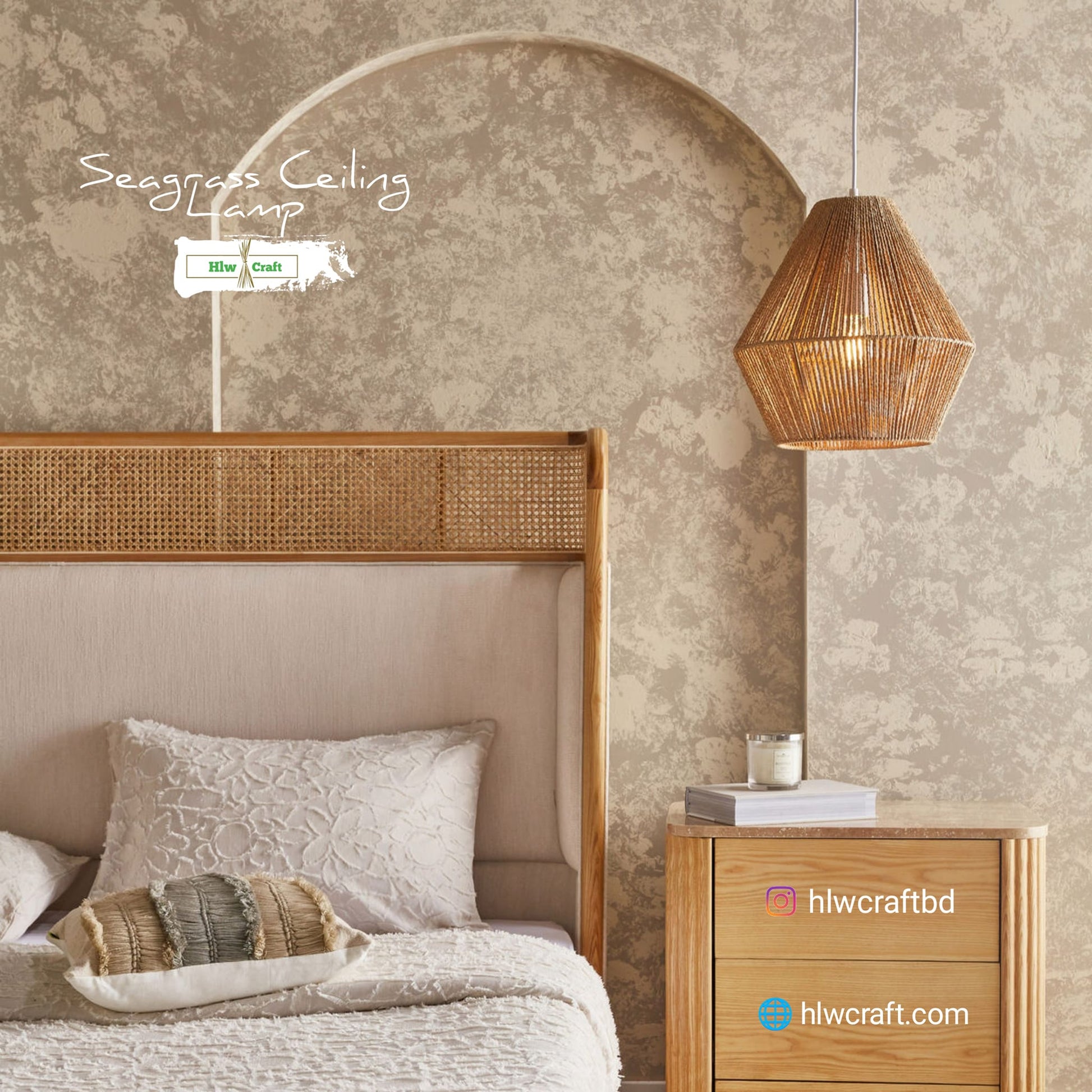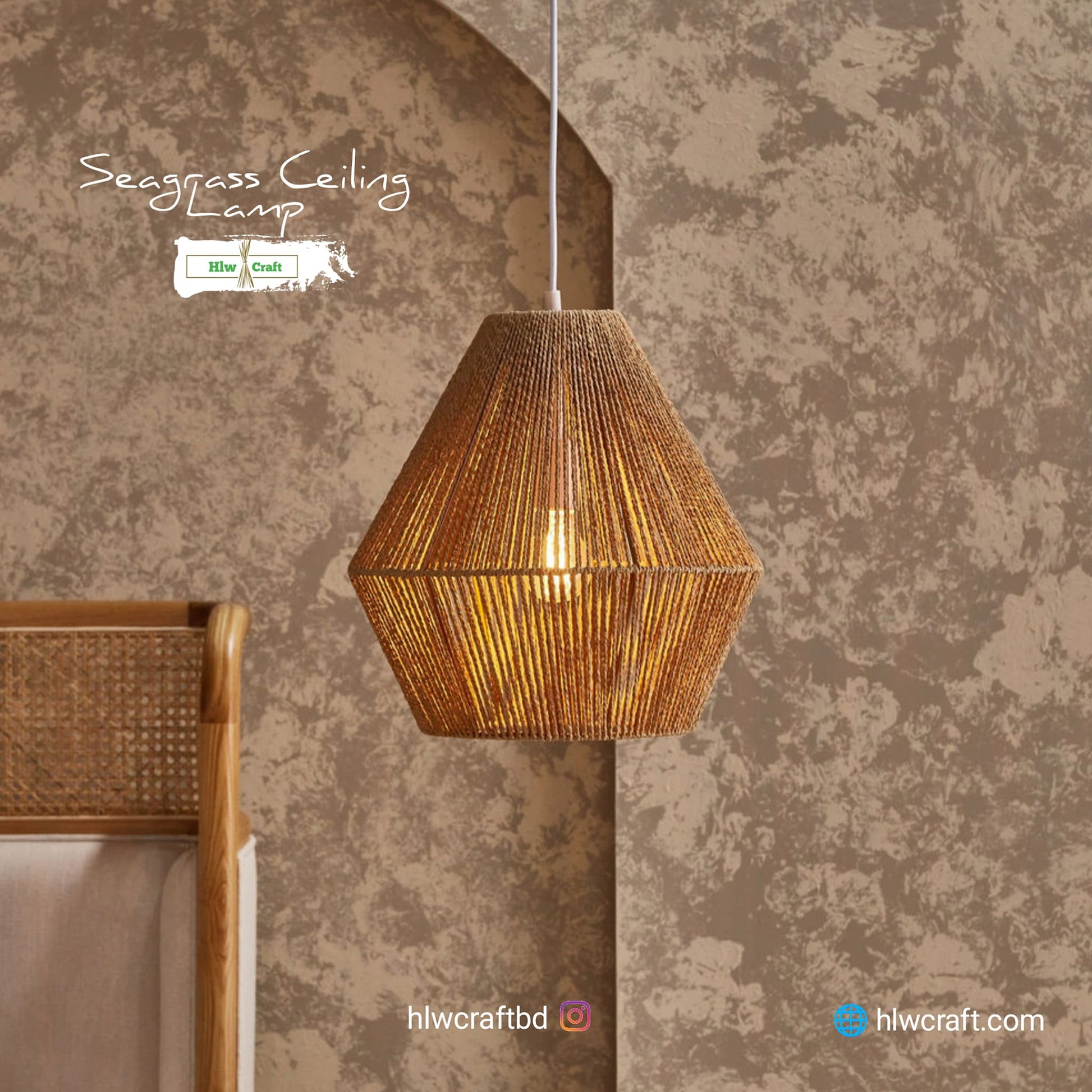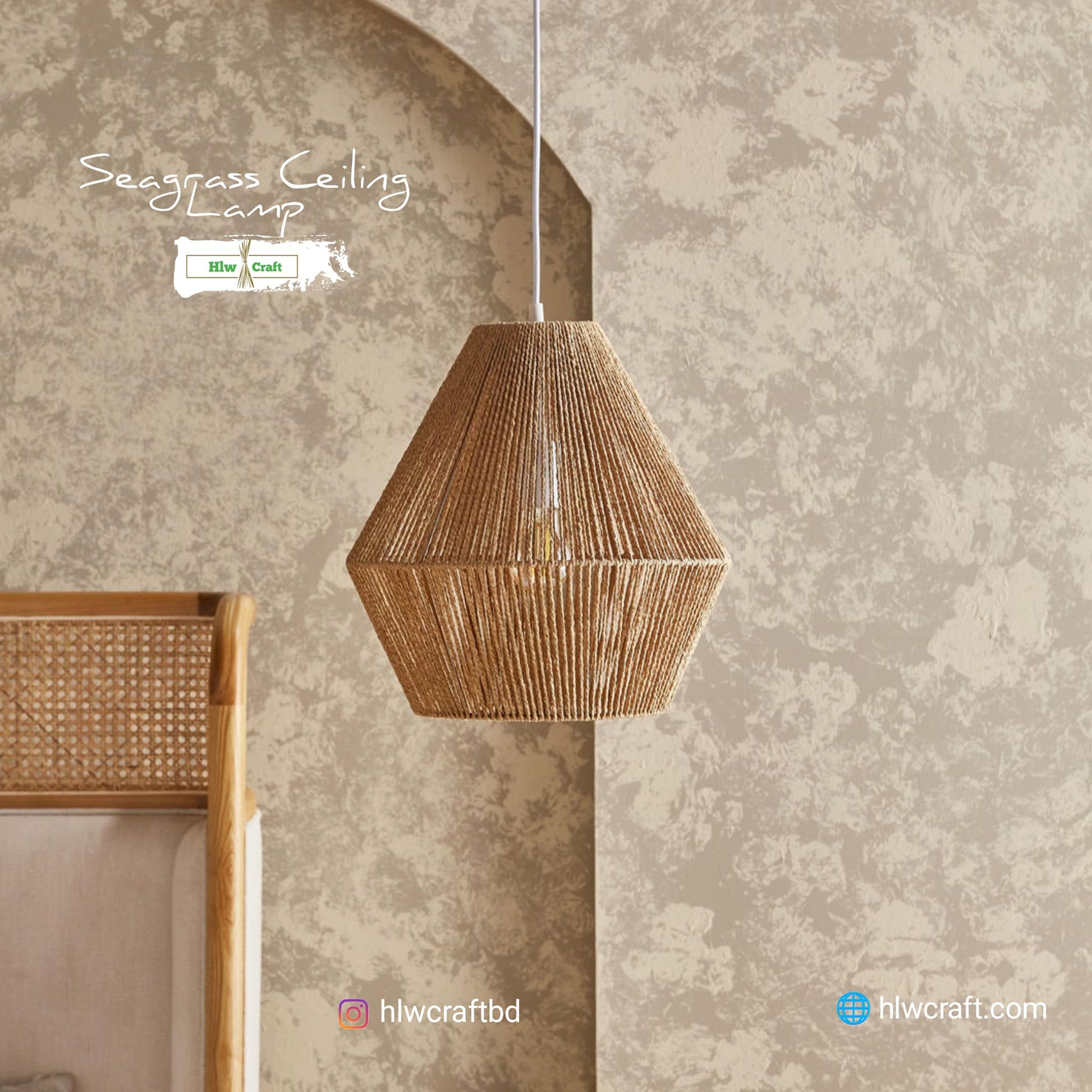 - Materials : Golden Fiber Seagrass, Metal Frame, Full Light Setup