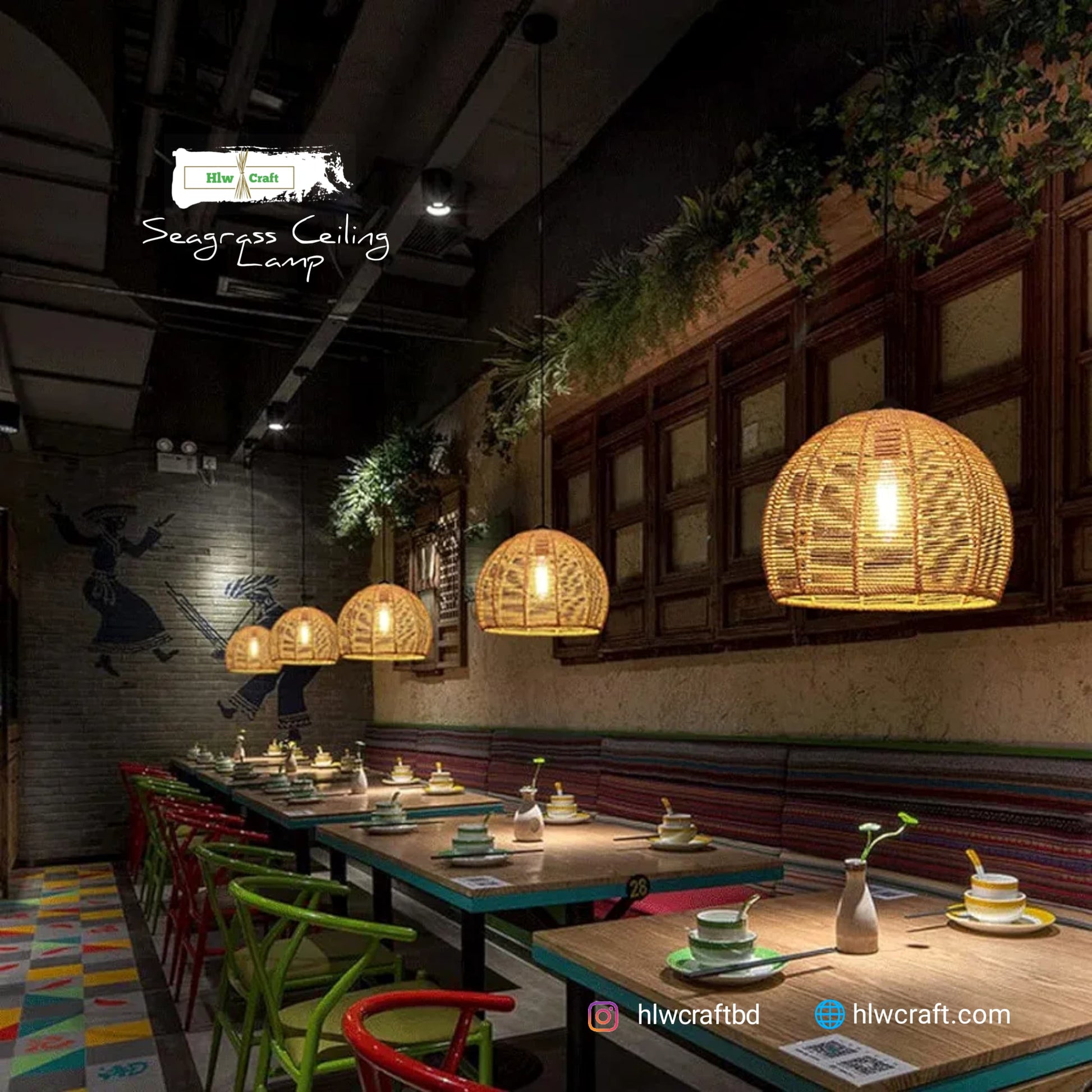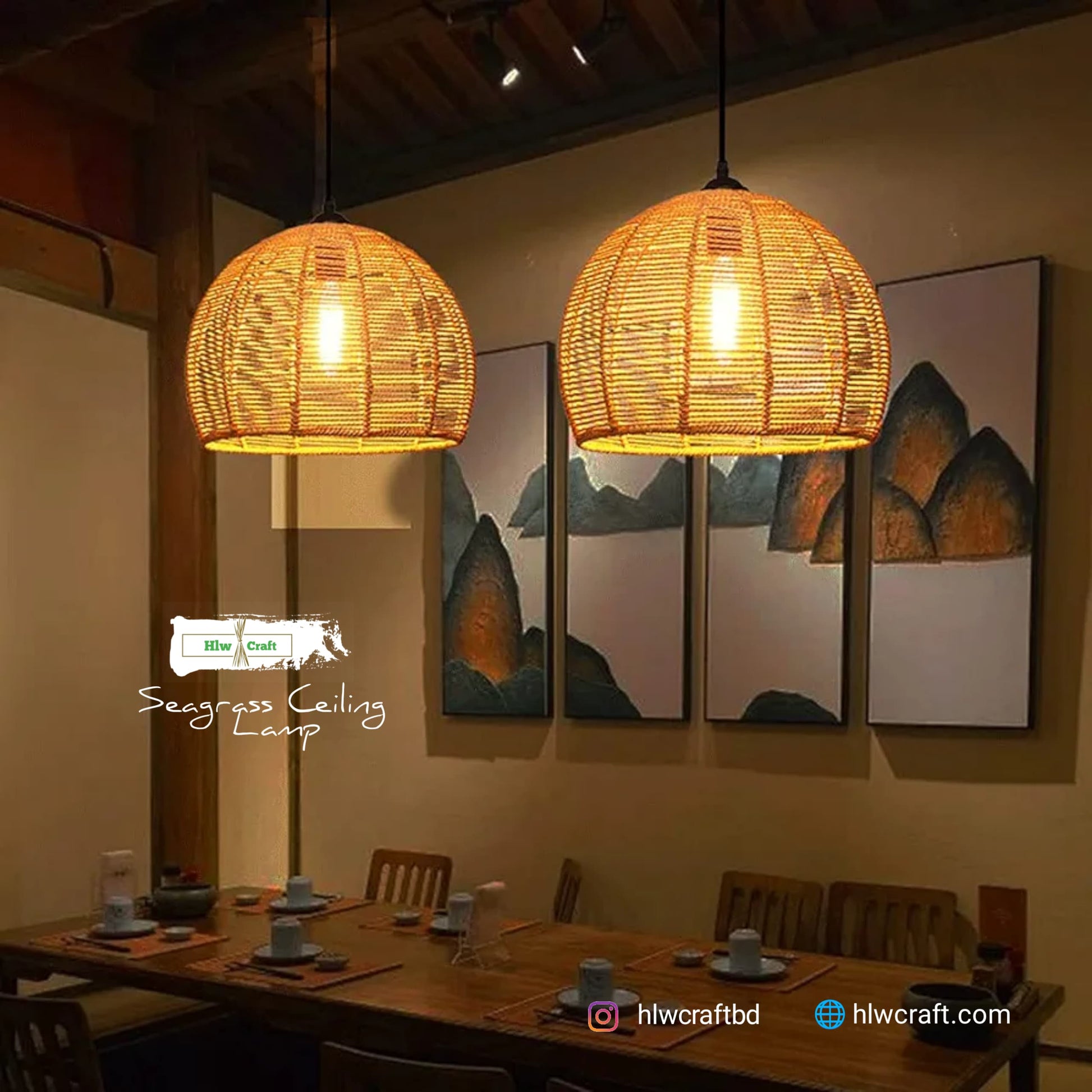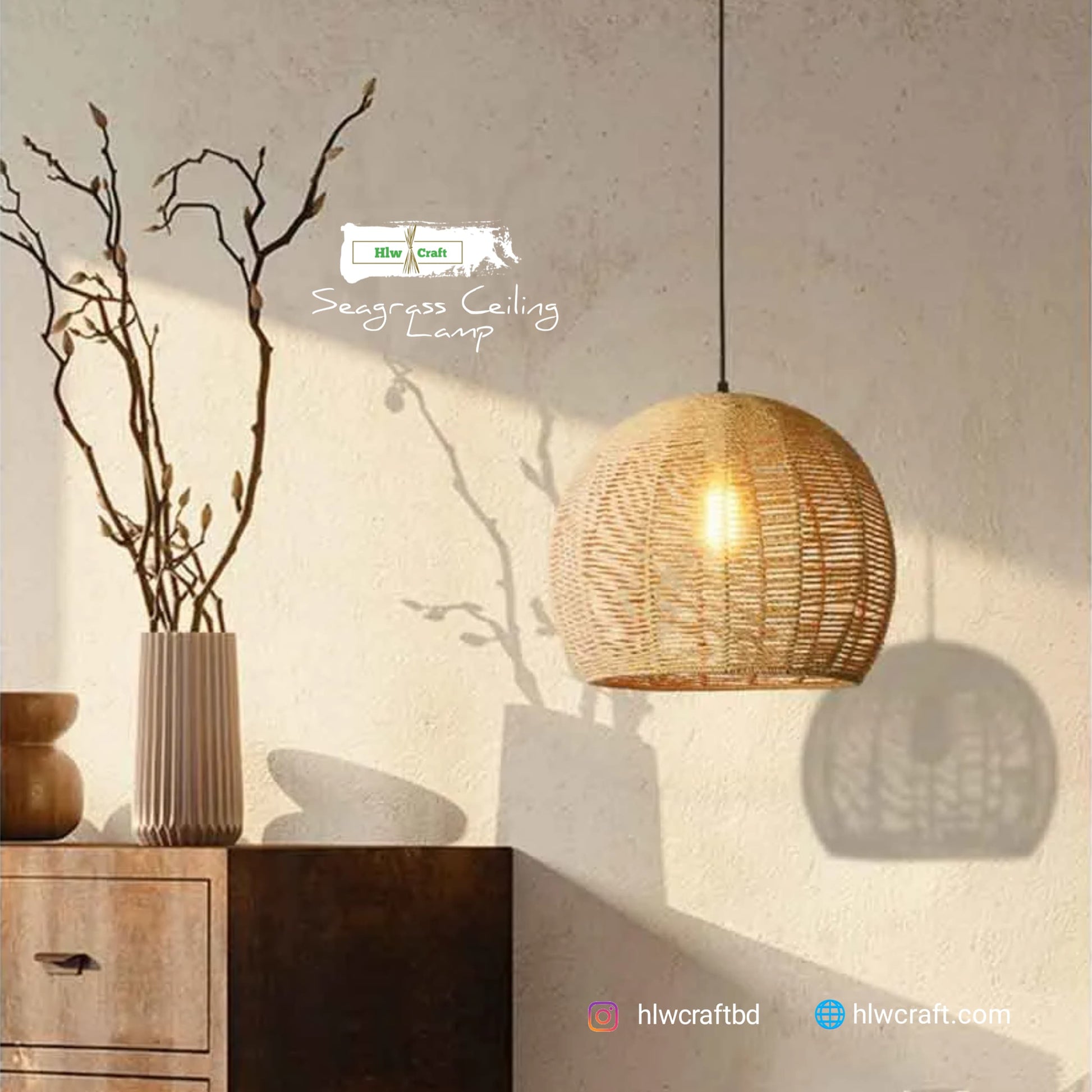- Materials : Golden Fiber Seagrass, Metal Frame, Full Light Setup.