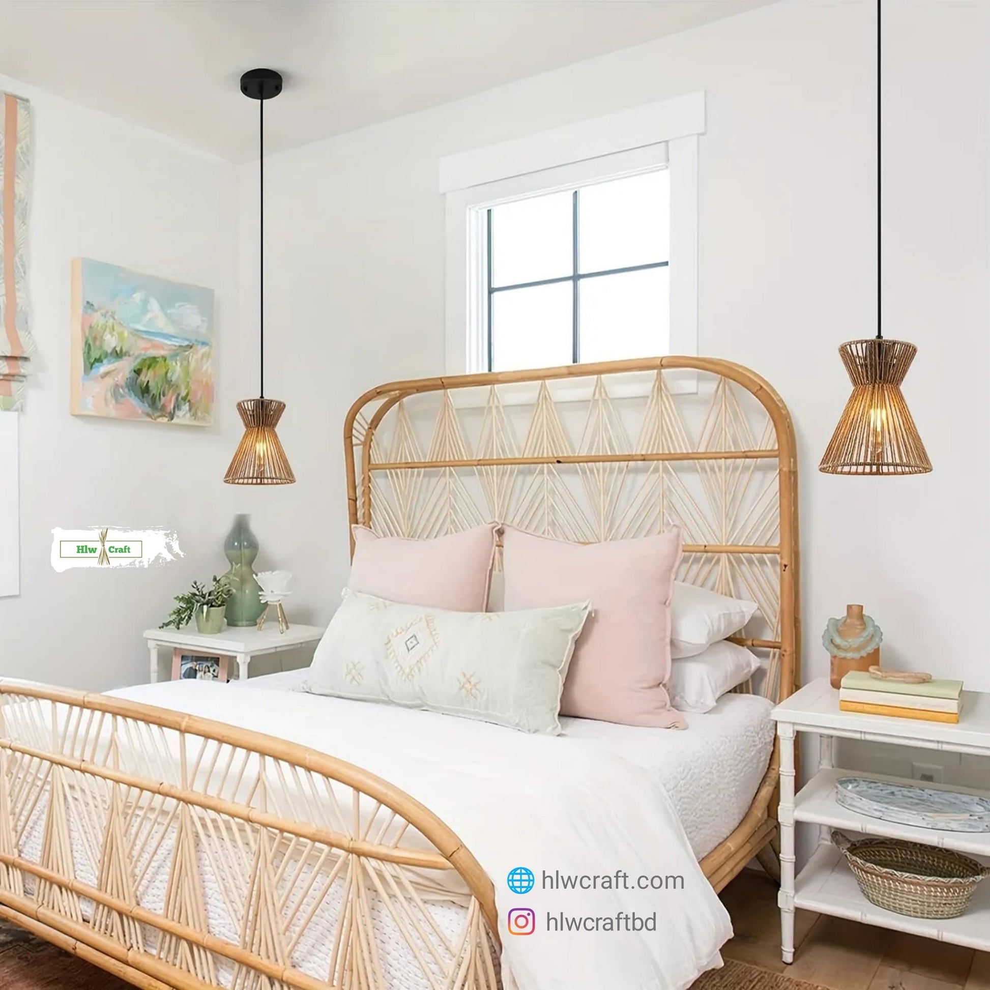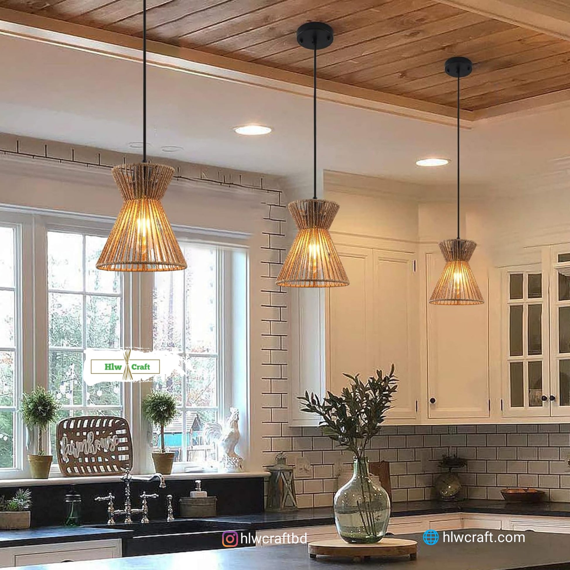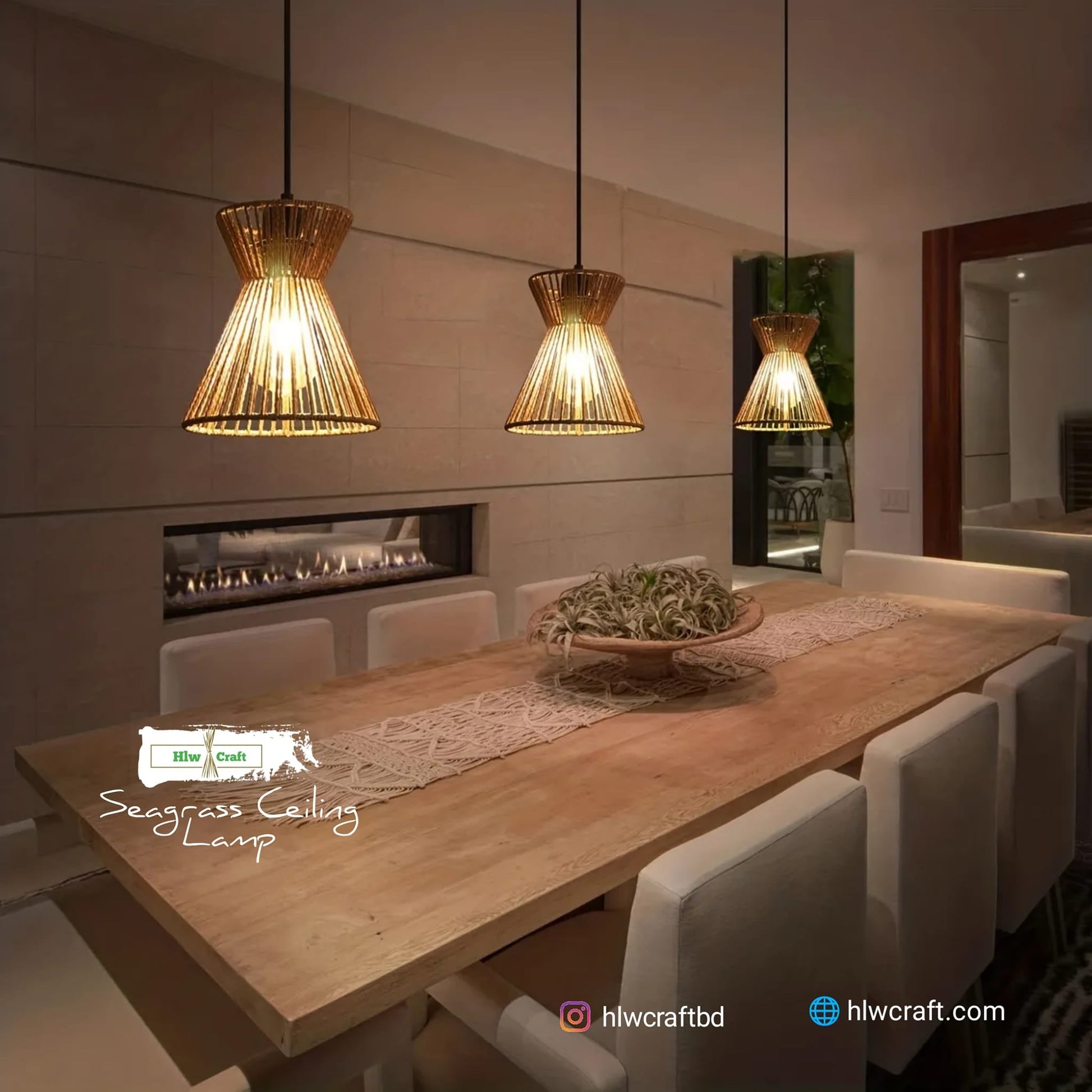 - Materials : Golden Fiber Seagrass, Metal Frame, Full Light Setup.