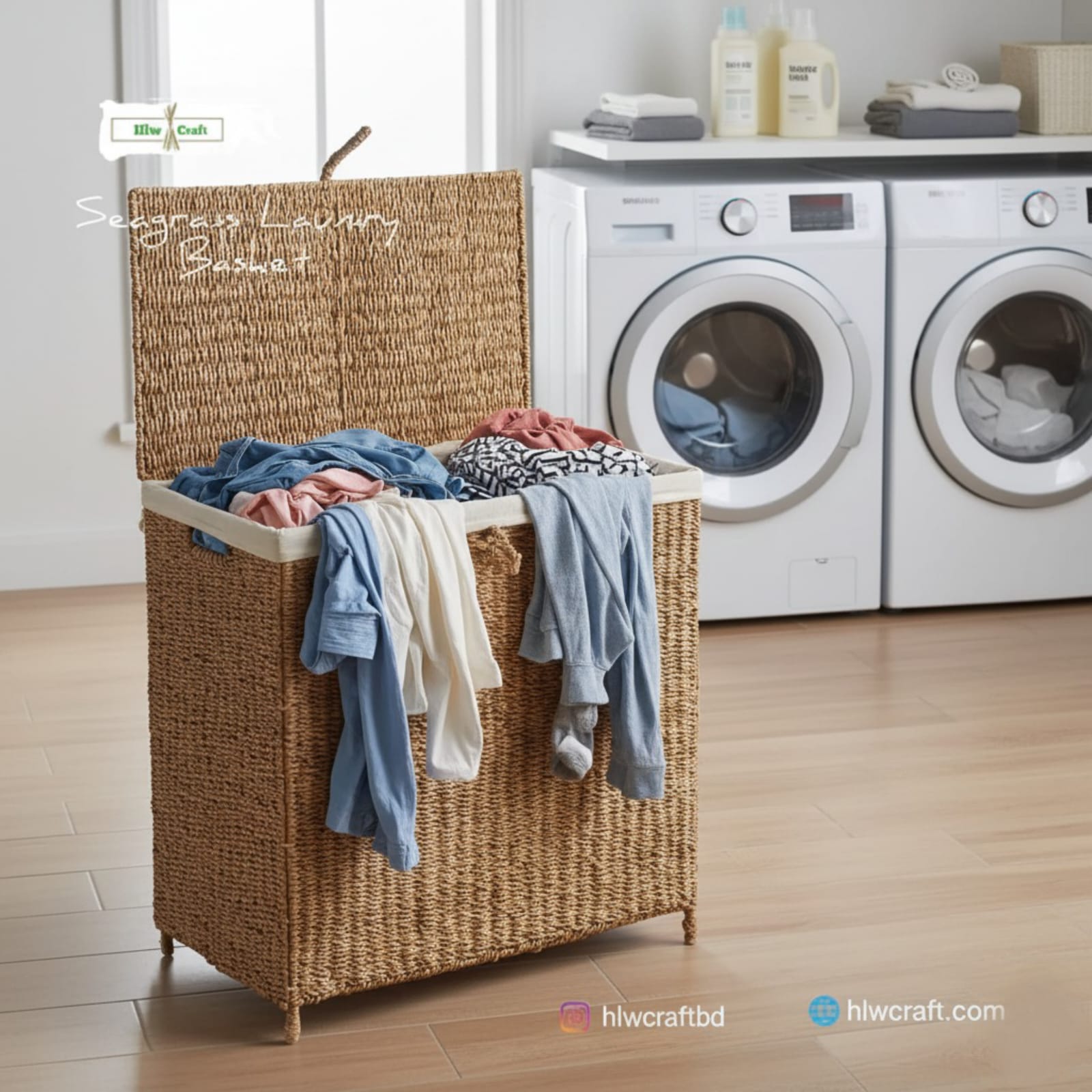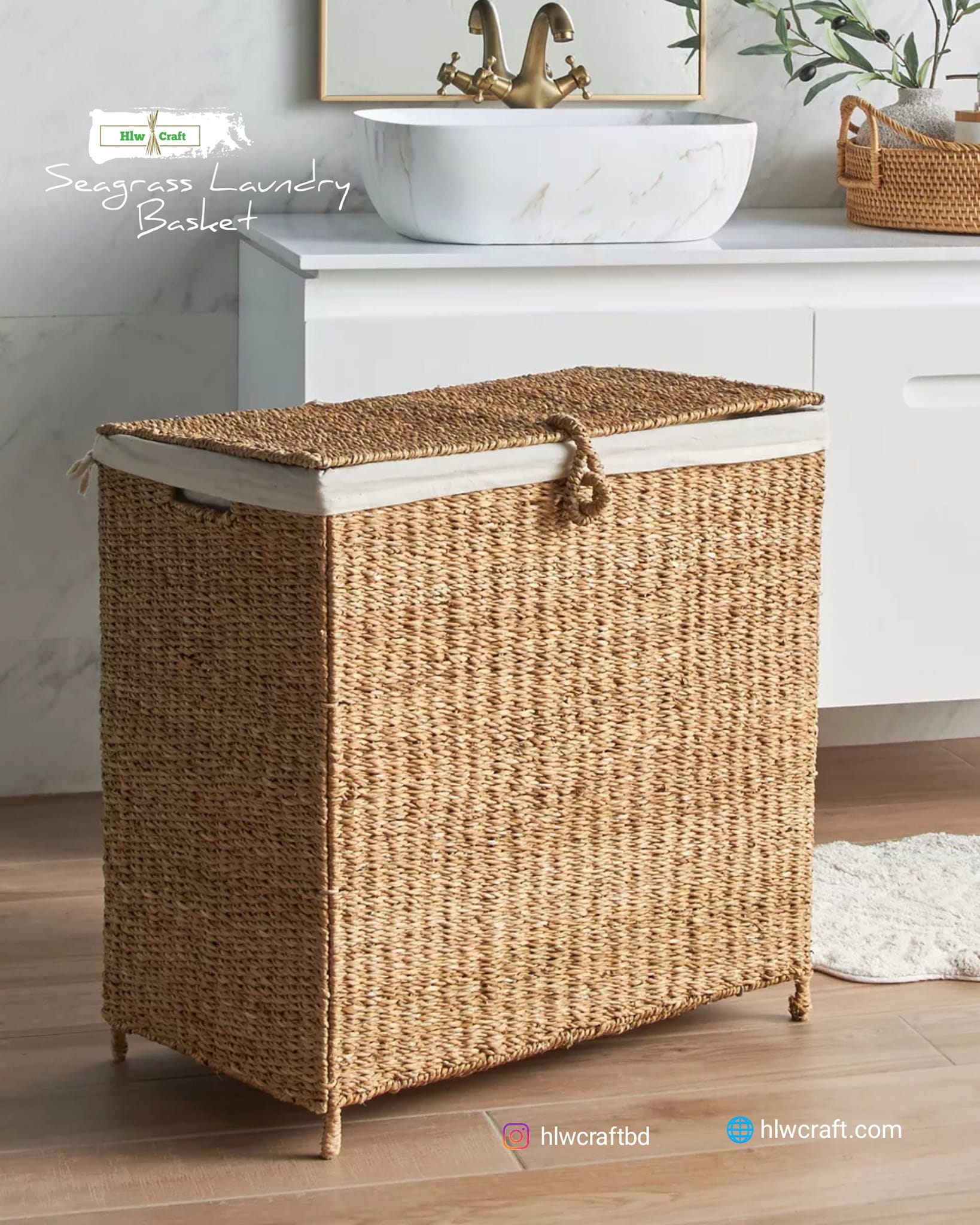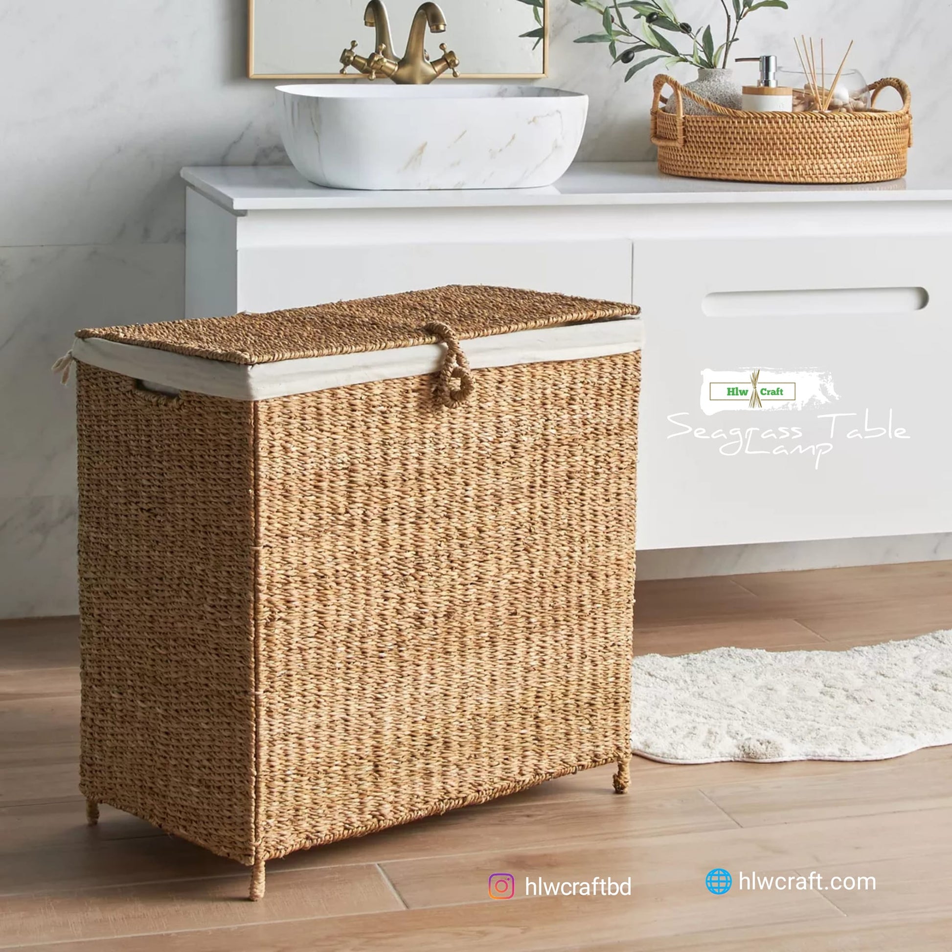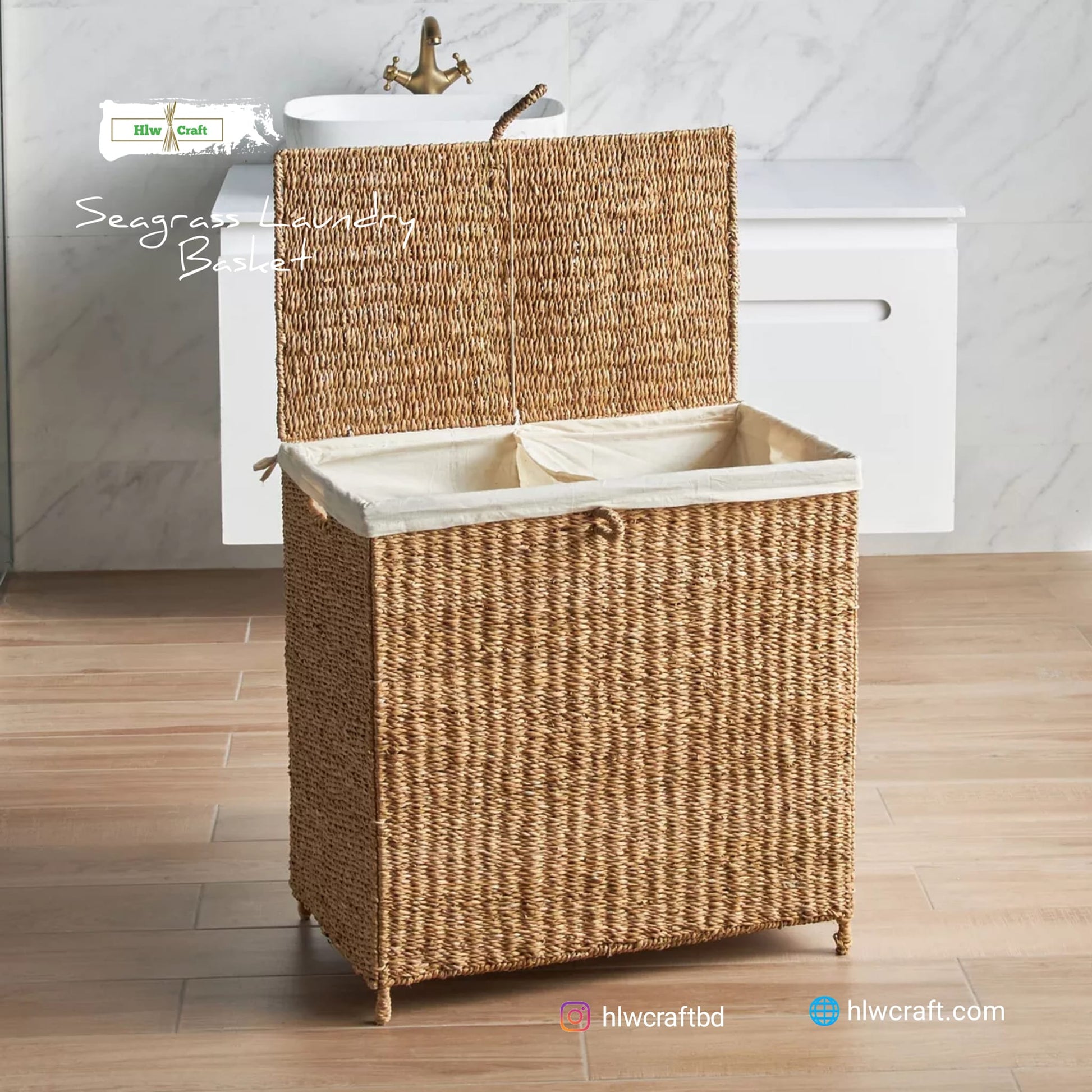 - Materials : Golden Fiber Seagrass, Metal Frame, High Quality Cloth Cover(2 Part).
