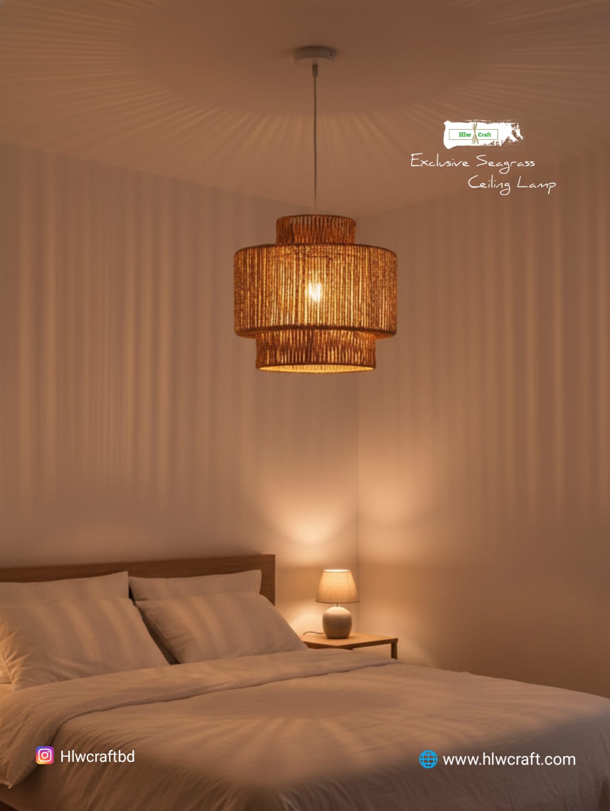 - Materials : Golden Fiber Seagrass, Metal Frame, Full Light Setup