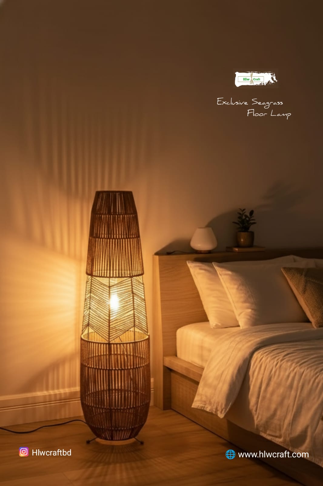 - Materials : Golden Fiber Seagrass, Metal Frame, Full Light Setup.