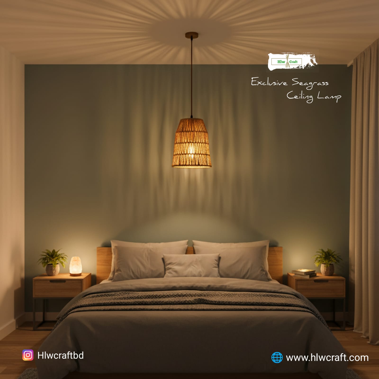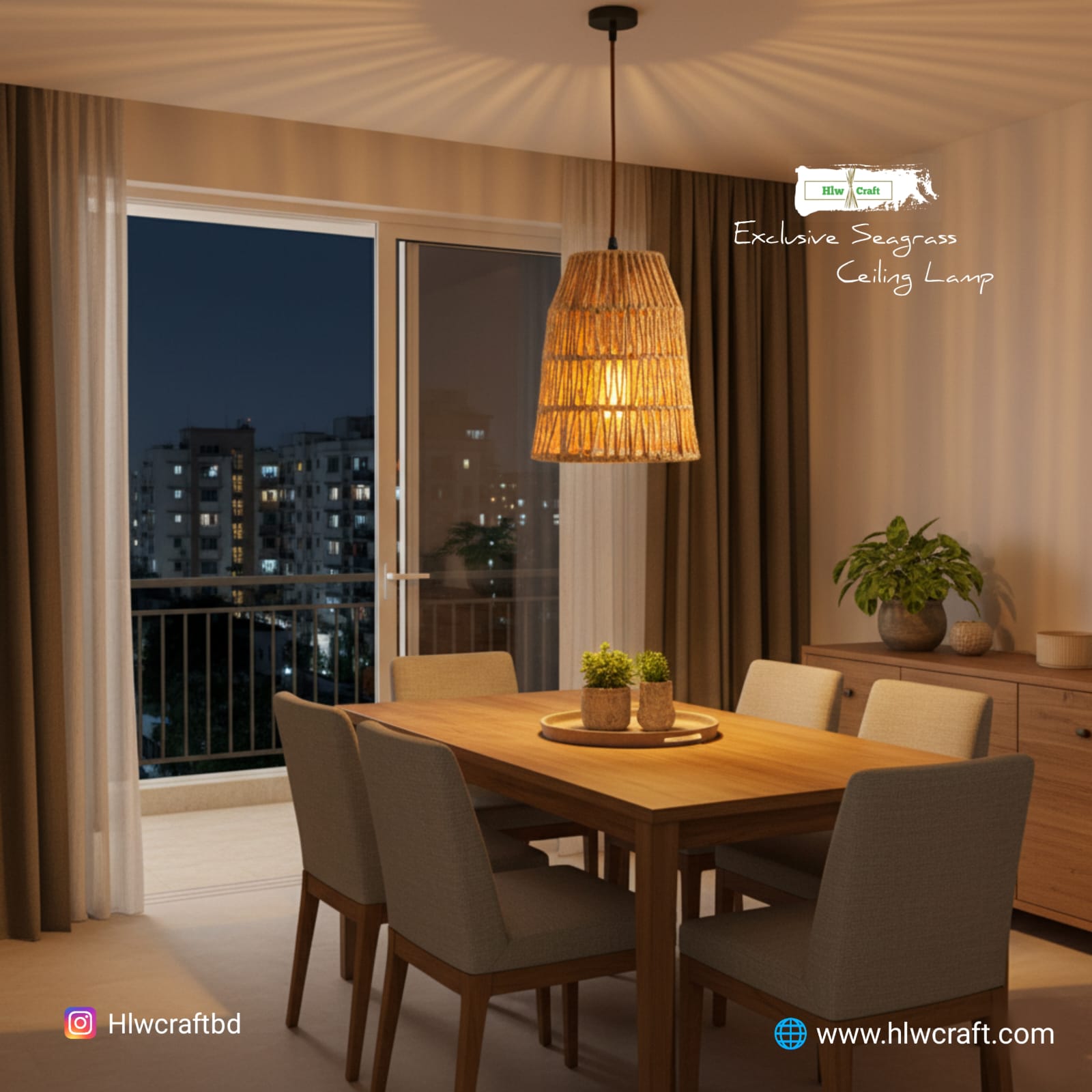 - Materials : Golden Fiber Seagrass, Metal Frame, Full Light Setup.