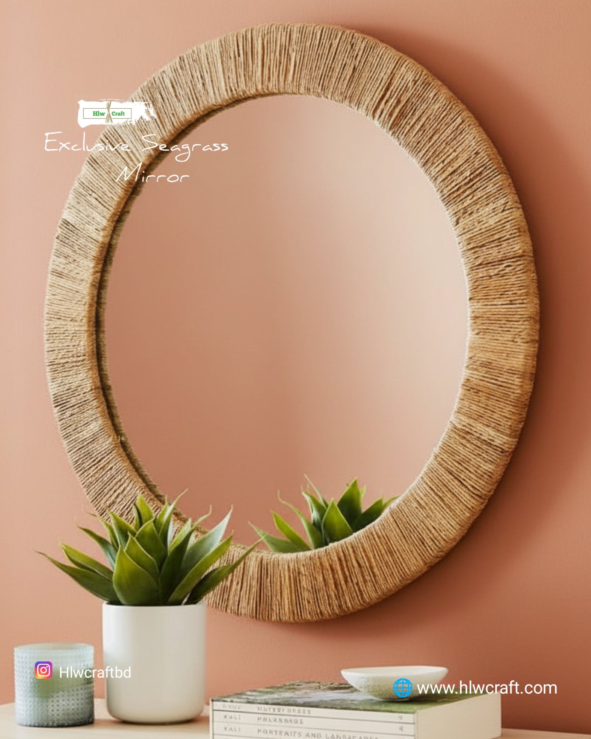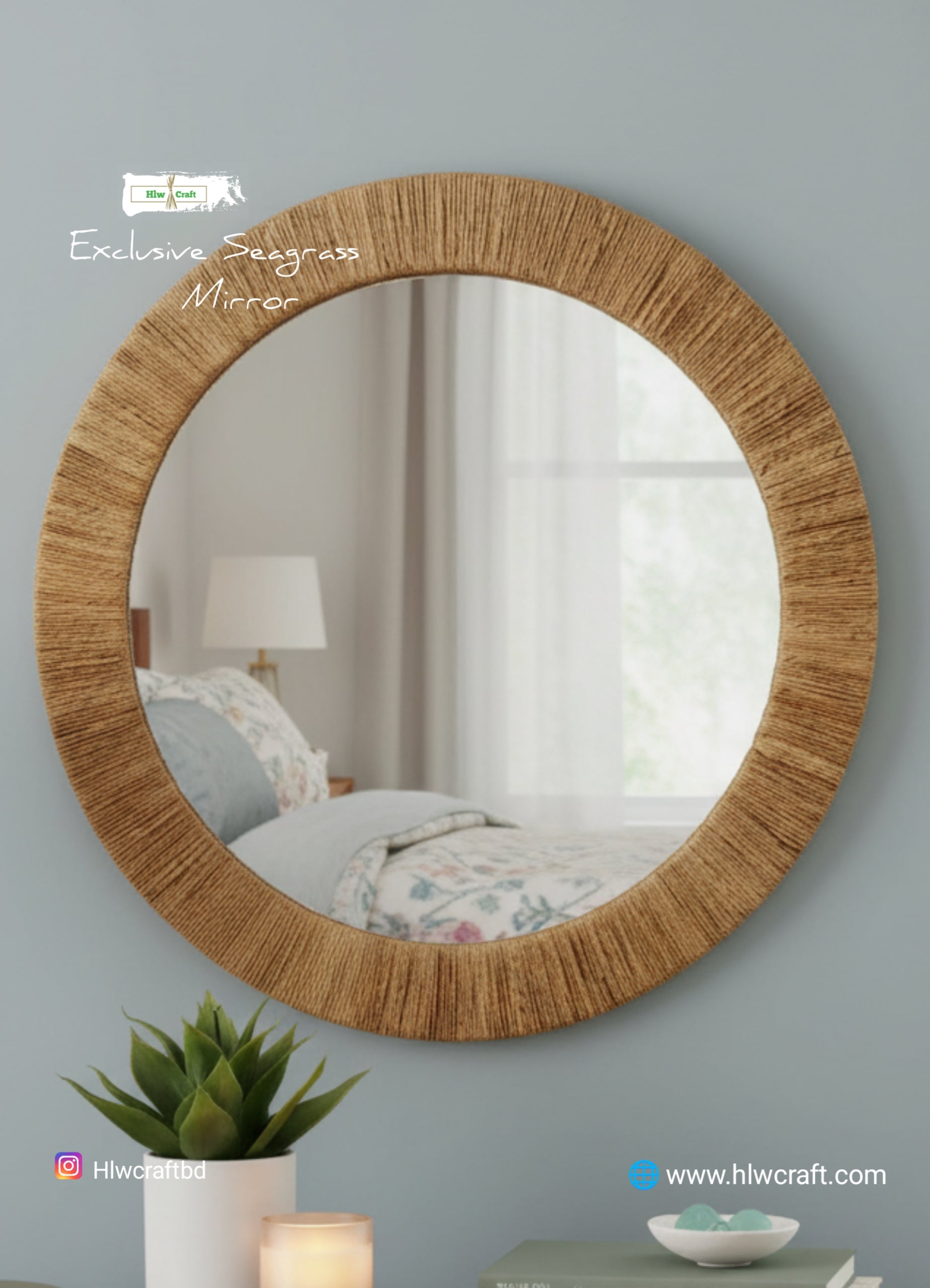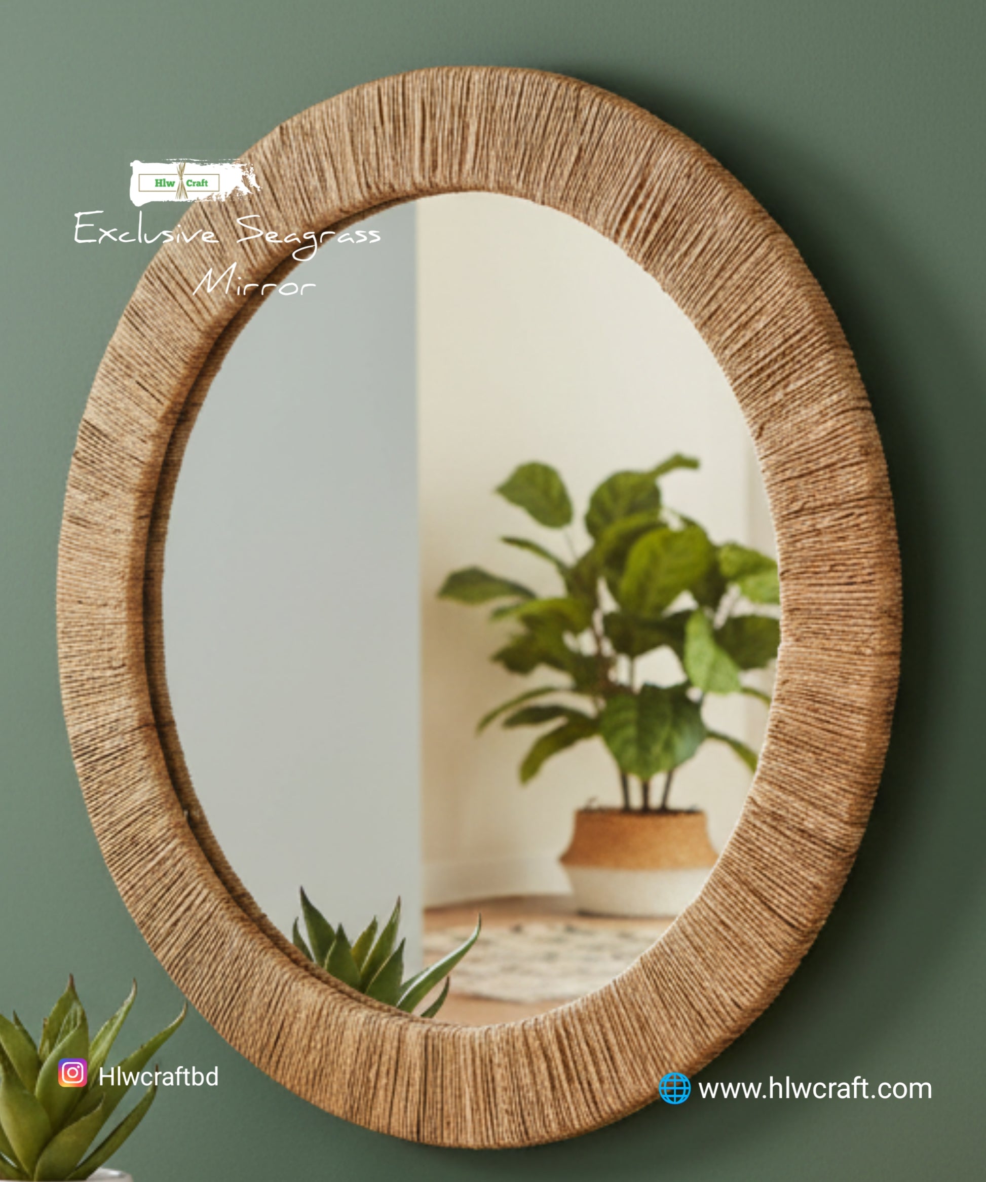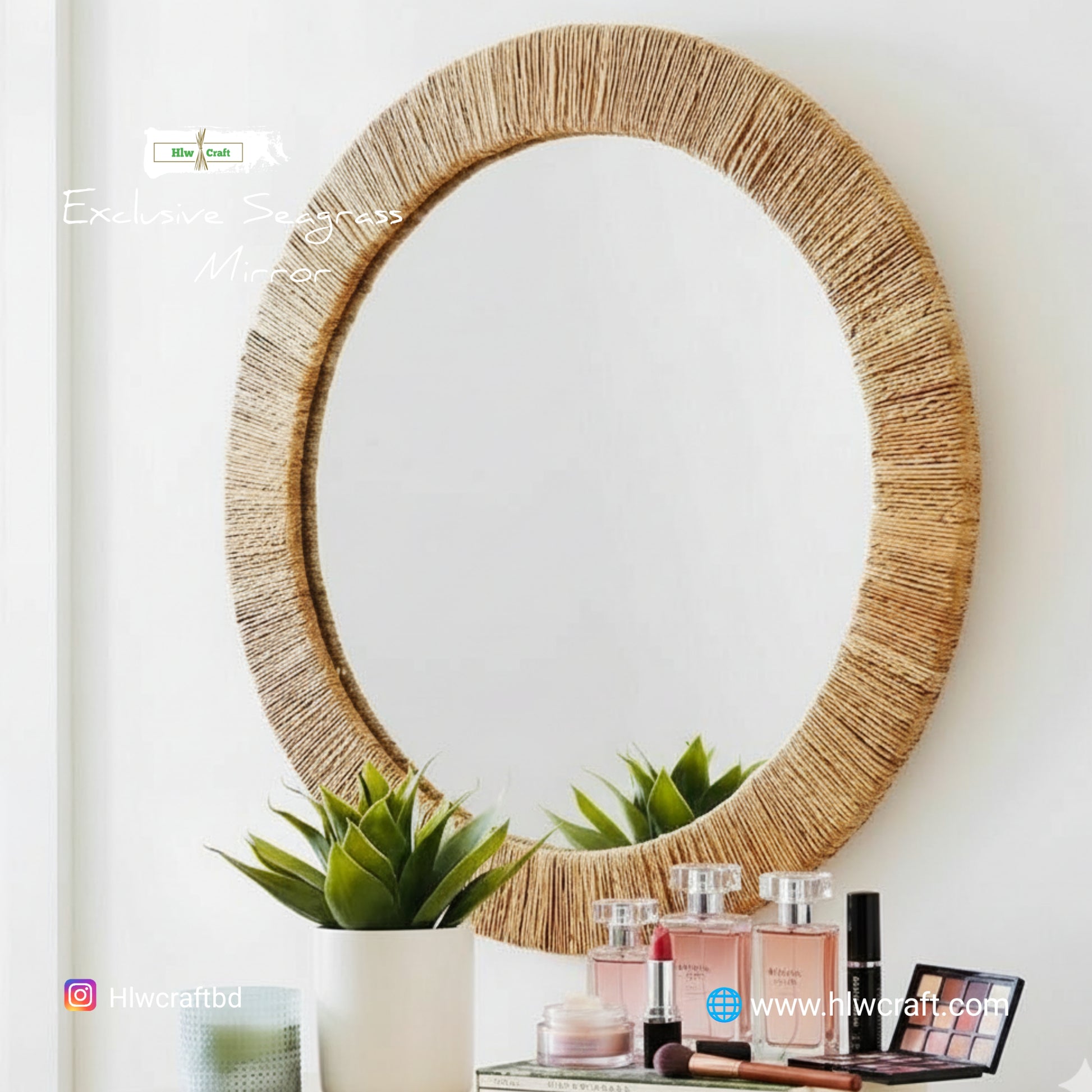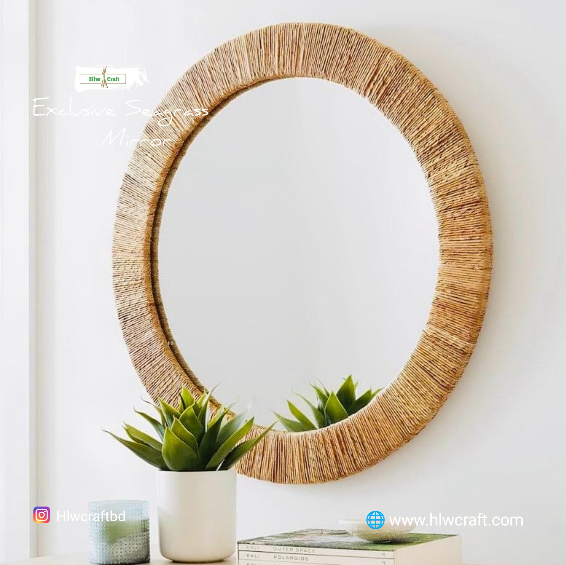 - Materials : Golden Fiber Seagrass, Metal Frame, High Quality Mirror.