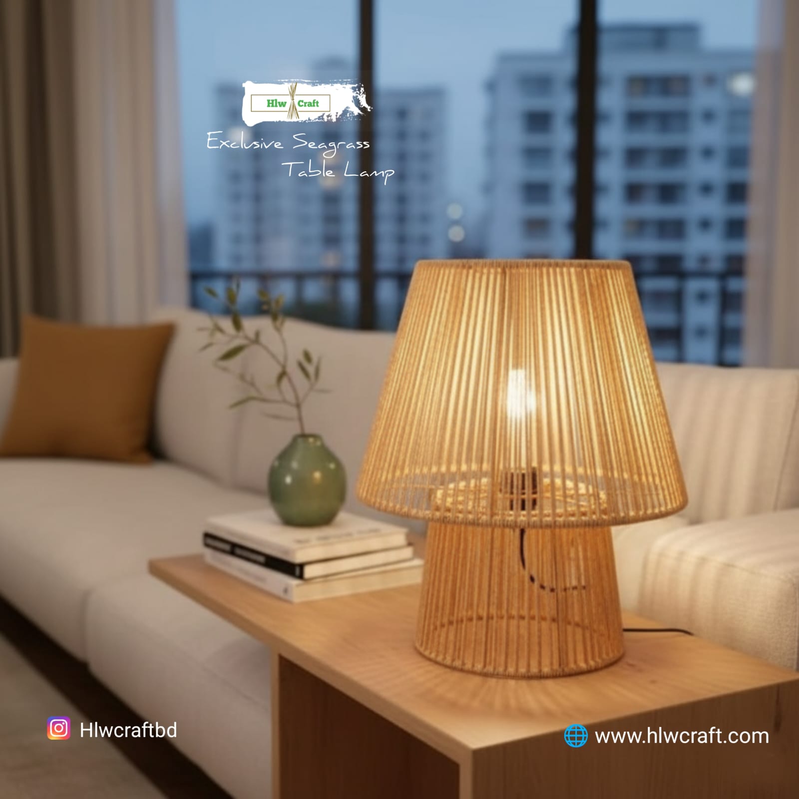 - Materials : Golden Fiber Seagrass, Metal Frame, Full Light Setup.