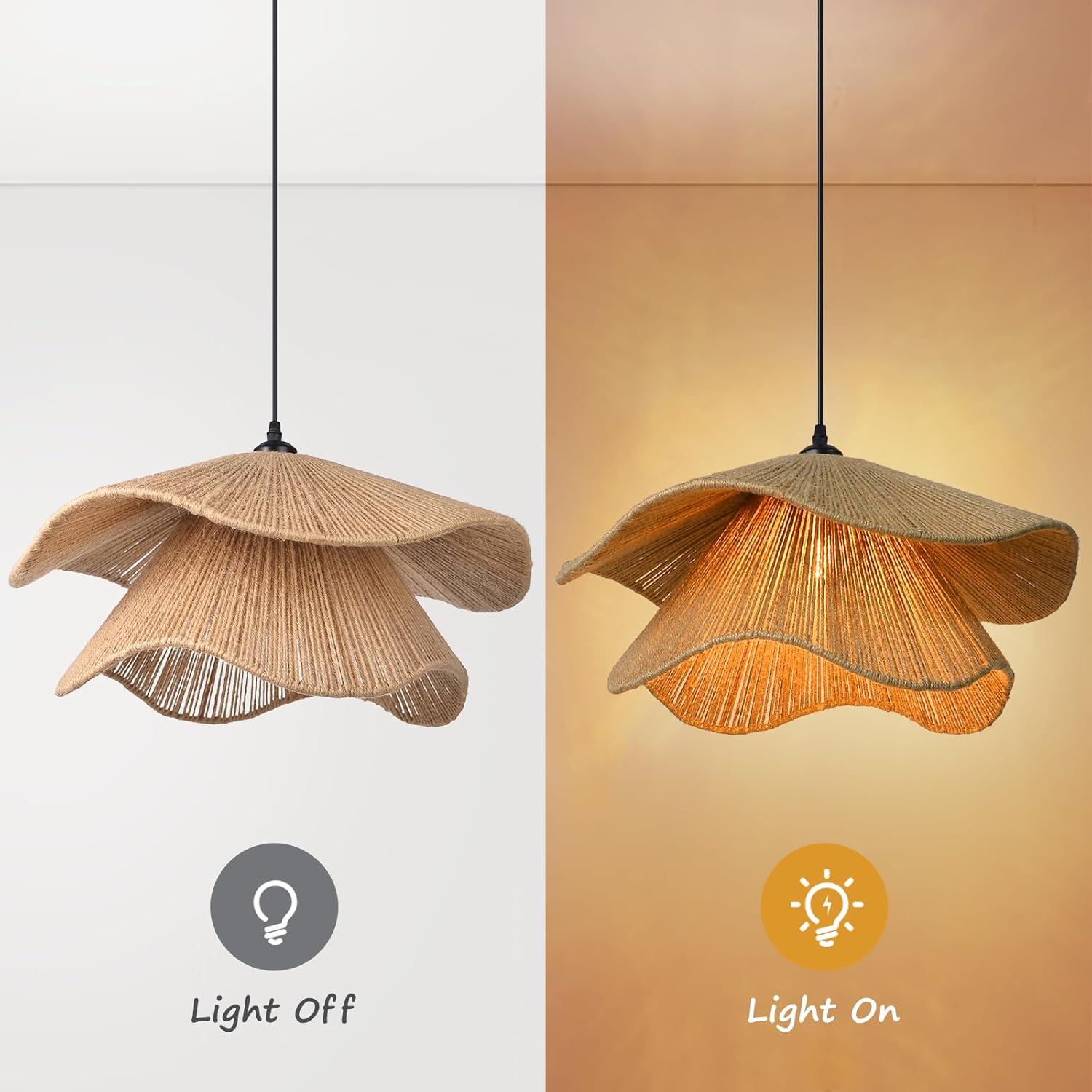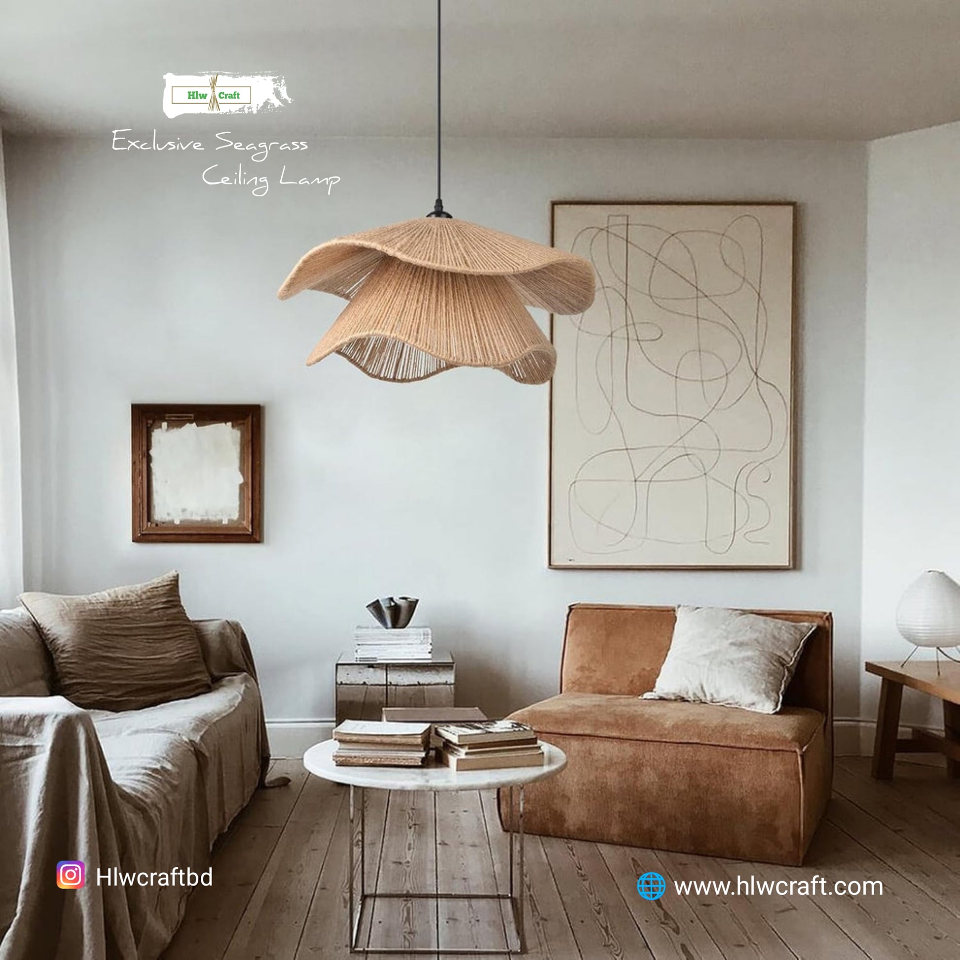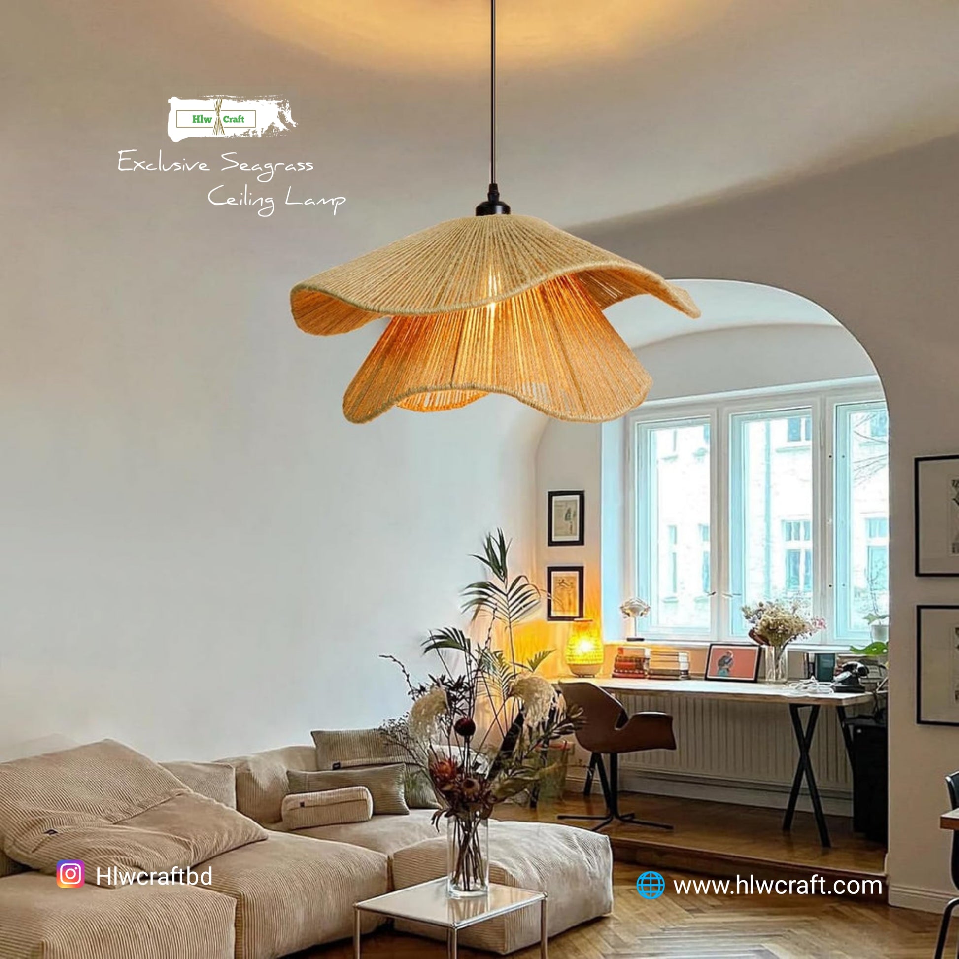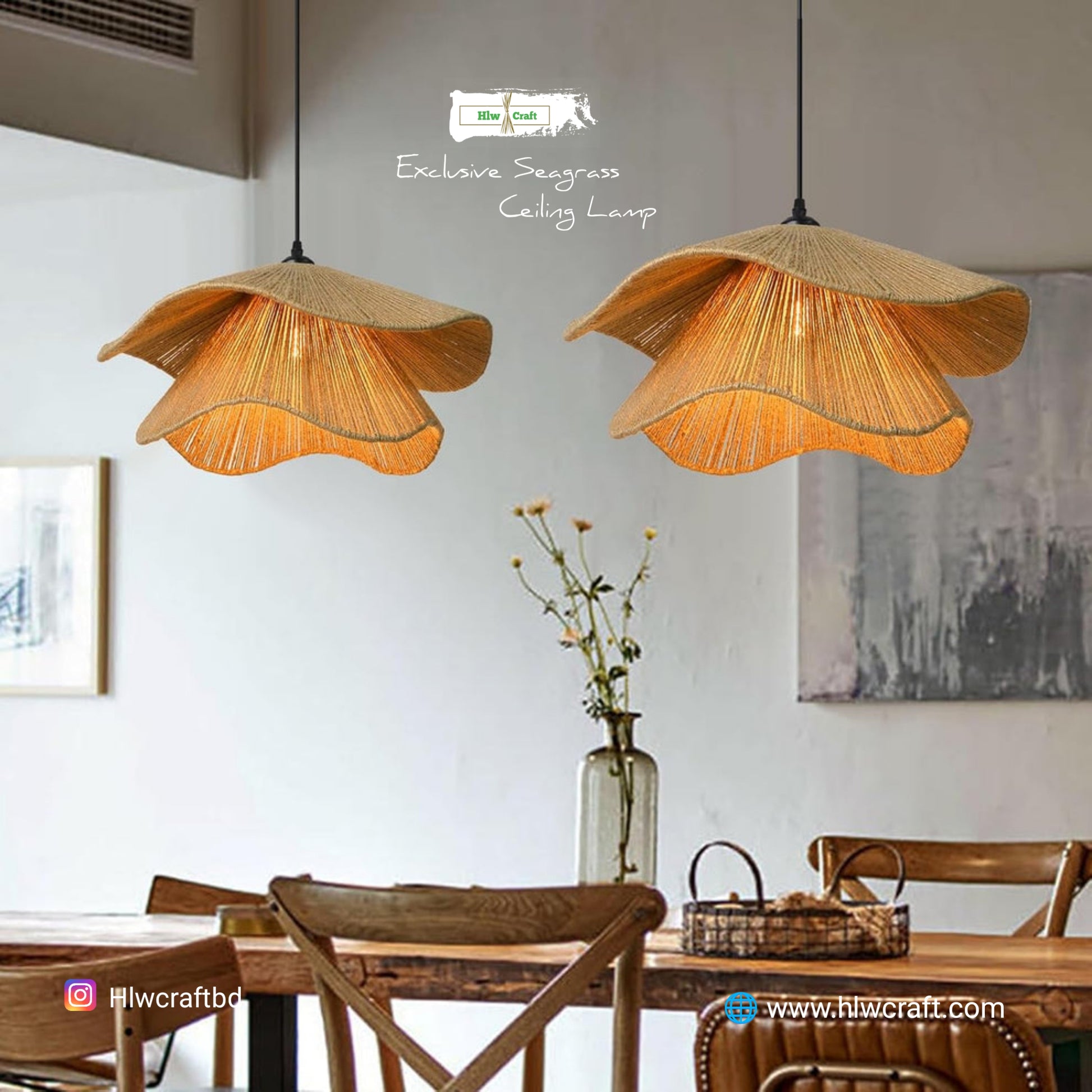 - Materials : Golden Fiber Seagrass, Metal Frame, Full Light Setup.