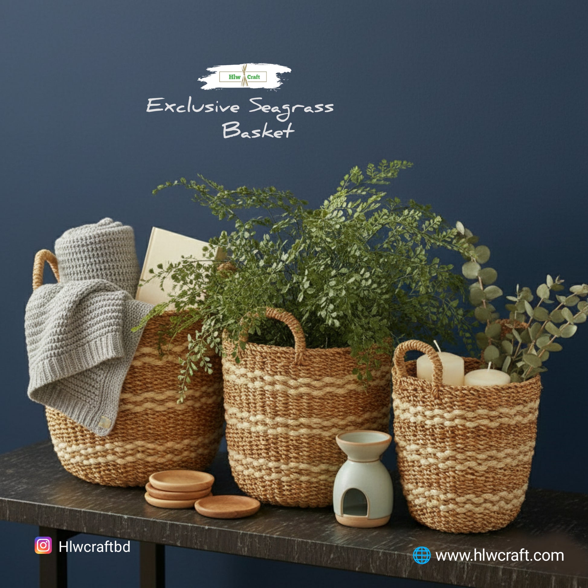 - Materials : Golden Fiber Seagrass, White Jute Rope.