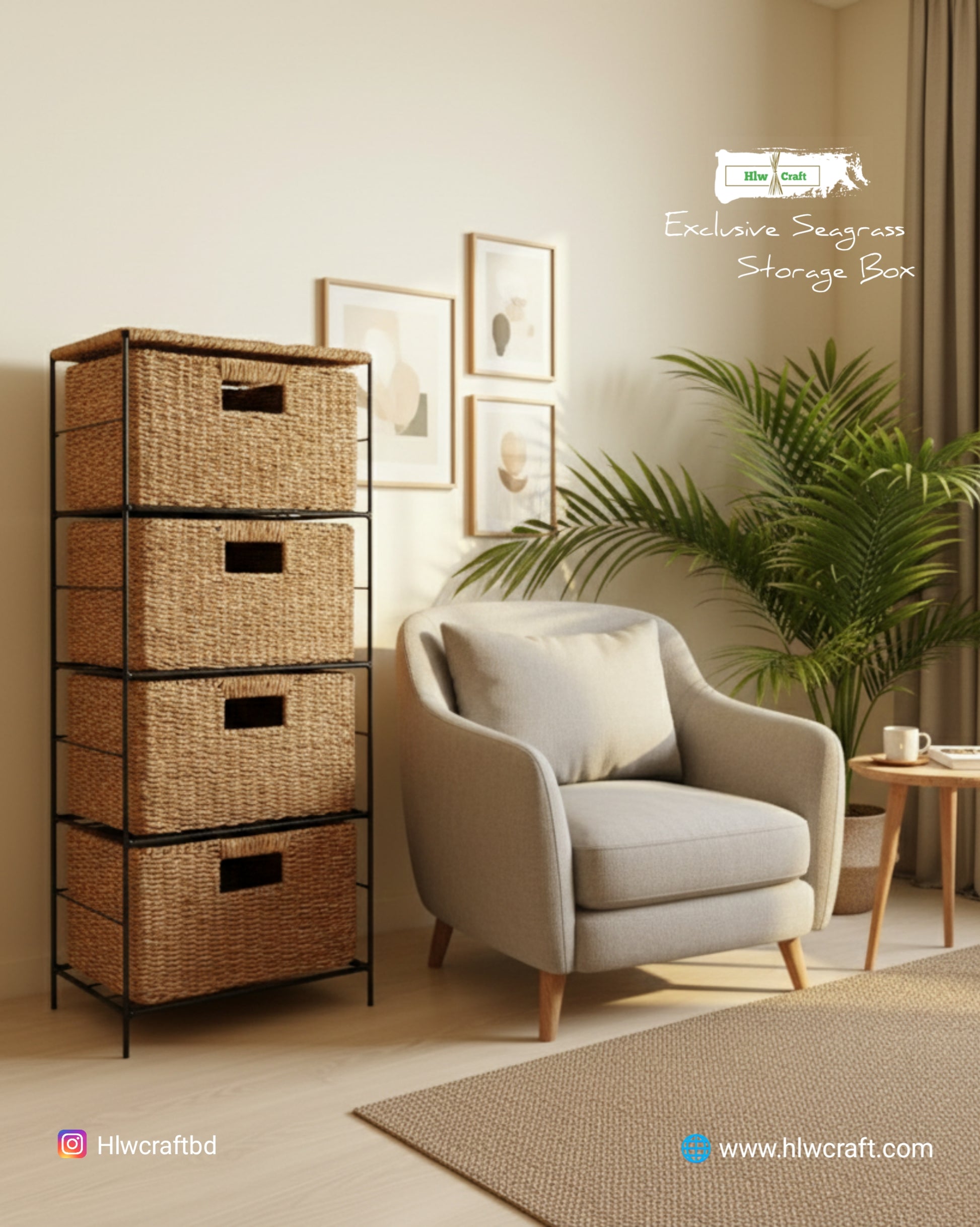 - Materials : Golden Fiber Seagrass, Metal frame.